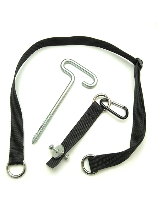 - Includes: Two-piece anchor strap with carabiner, two self-tapping ice anchors, full set of hardware